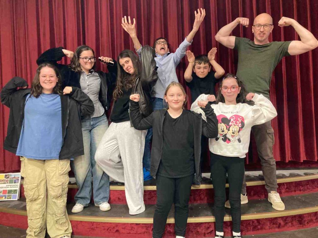 Na smotri se predstavila i naša starija skupina (16-48 godina), prošlogodišnji dobitnici nagrada za režiju, s autorskim grupnim projektom “Čovječe, ne krivi se”. Pod vodstvom Karla Kučande, ansambl je izveo slojevitu i emotivnu priču o krivnji, traumama iz prošlosti i snazi oprosta, potvrdivši visoku umjetničku razinu našeg studija.